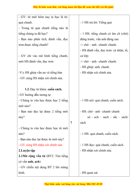 - Nhận biết vần anh, ach; đánh vần, đọc đúng tiếng có vần anh, ach: quả chanh, cuốn sách.