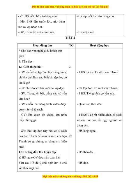- Đọc đúng bài Tập đọc Tủ sách của Thanh.