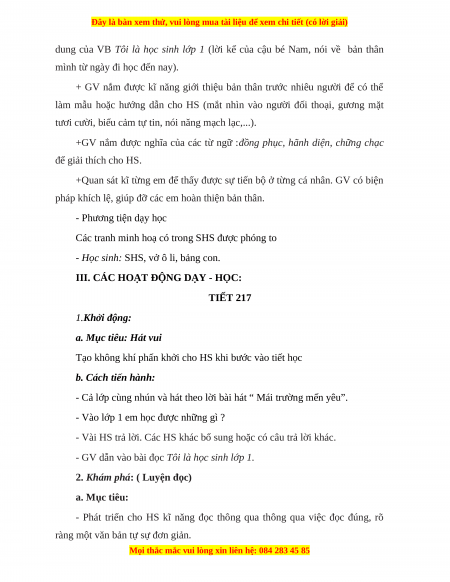 III. CÁC HOẠT ĐỘNG DẠY - HỌC: TIẾT 217