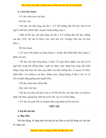 + GV đọc lại toàn VB và chuyển tiếp sang phần trả lời câu hỏi. TIẾT 218