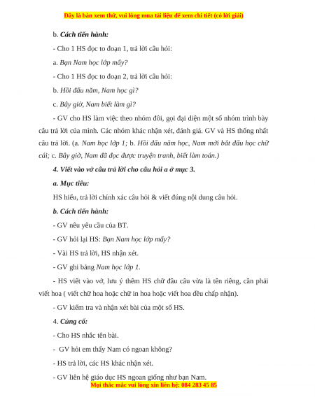 câu trả lời. (a. Nam học lớp 1; b. Hồi đẩu năm học, Nam mới bắt đẩu học chữ