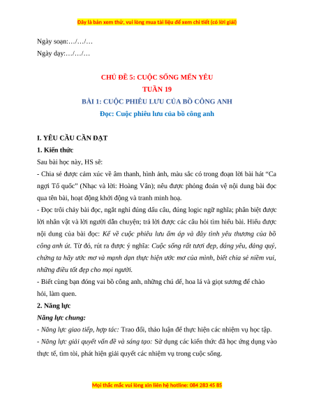 CHỦ ĐỀ 5: CUỘC SỐNG MẾN YÊU TUẦN 19