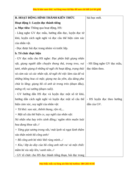 tươi, nhấn giọng ở những từ ngữ chỉ hoạt động, trạng thái đọc thầm theo.