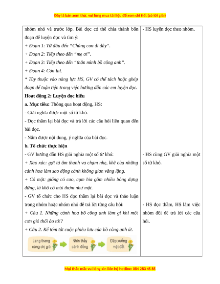 nhóm nhỏ và trước lớp. Bài đọc có thể chia thành bốn