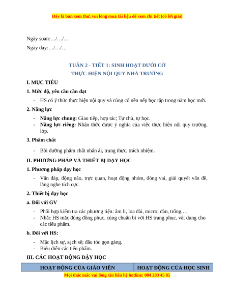 - HS có ý thức thực hiện nội quy và củng cố nền nếp học tập trong năm học mới. 2. Năng lực