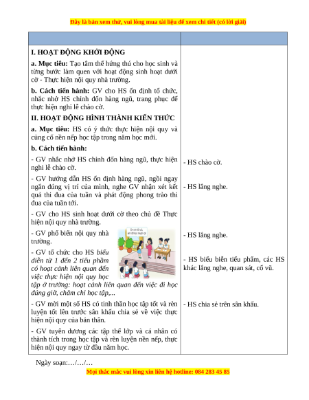 hiện nội quy ngay từ đầu năm học. Ngày soạn:…/…/…