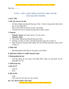 TUẦN 2 - TIẾT 2: HOẠT ĐỘNG GIÁO DỤC THEO CHỦ ĐỀ