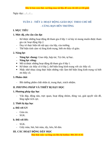 Giáo án Tuần 2 HĐTN lớp 2 Cánh diều