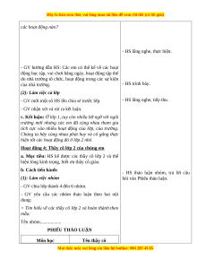 - GV cho HS sinh hoạt dưới cờ theo chủ đề Thực