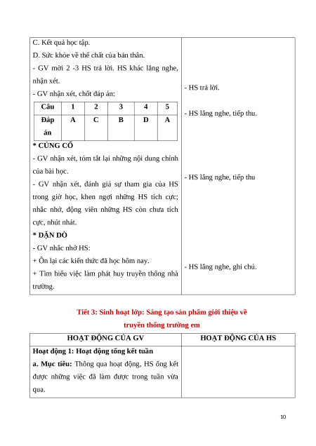 Tiết 2: Hoạt động giáo dục theo chủ đề: Phát huy truyền thống nhà trường HOẠT ĐỘNG CỦA GV HOẠT ĐỘNG CỦA HS