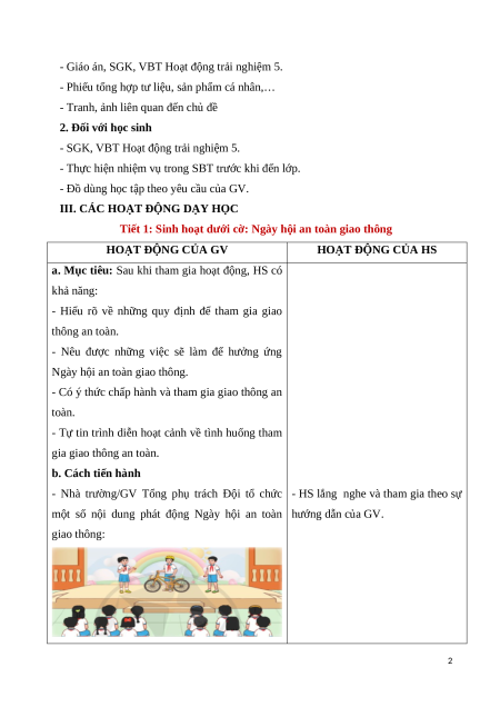 một số nội dung phát động Ngày hội an toàn hướng dẫn của GV. giao thông: 2