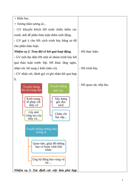 - GV khuyến khích HS tích cực, nhiệt tình chia sẻ ý kiến của mình. - HS lắng nghe, tiếp thu.