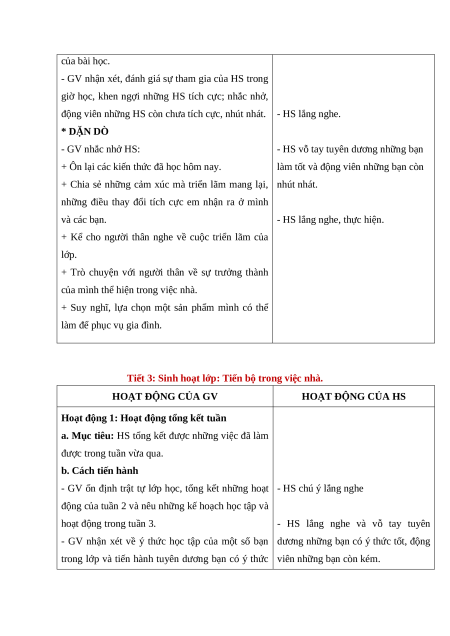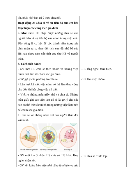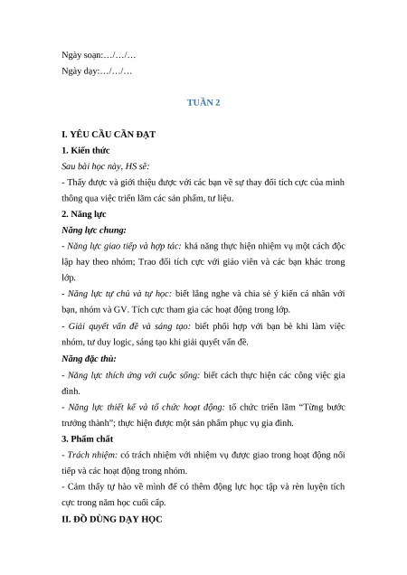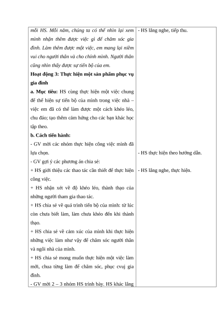 trưởng thành”; thực hiện được một sản phẩm phục vụ gia đình. 3. Phẩm chất