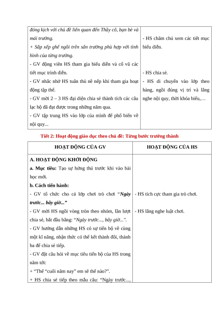 Tiết 2: Hoạt động giáo dục theo chủ đề: Từng bước trưởng thành HOẠT ĐỘNG CỦA GV HOẠT ĐỘNG CỦA HS