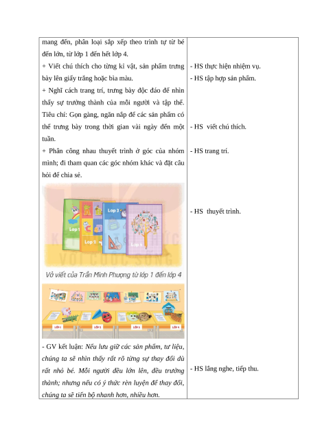 + Tập hợp các kỉ vật, sản phẩm cá nhân mà HS