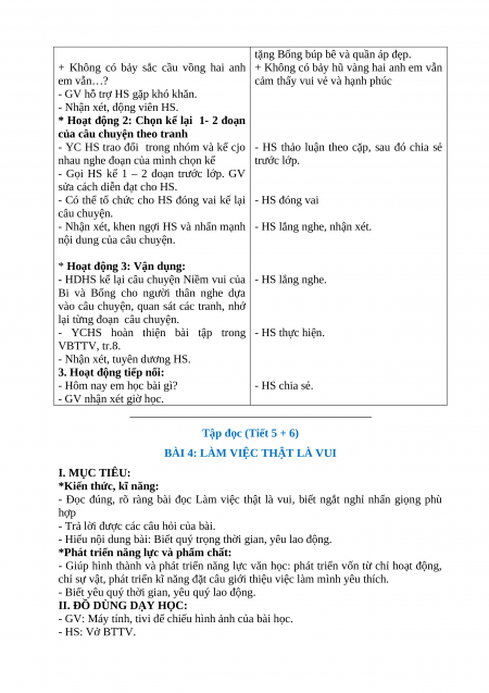 BÀI 3: NIỀM VUI CỦA BI VÀ BỐNG I. MỤC TIÊU: *Kiến thức, kĩ năng: