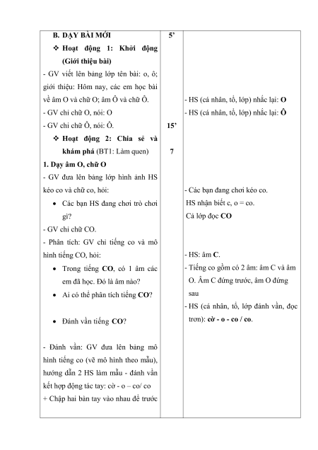 2. Dạy âm Ô, chữ Ô (như cách dạy