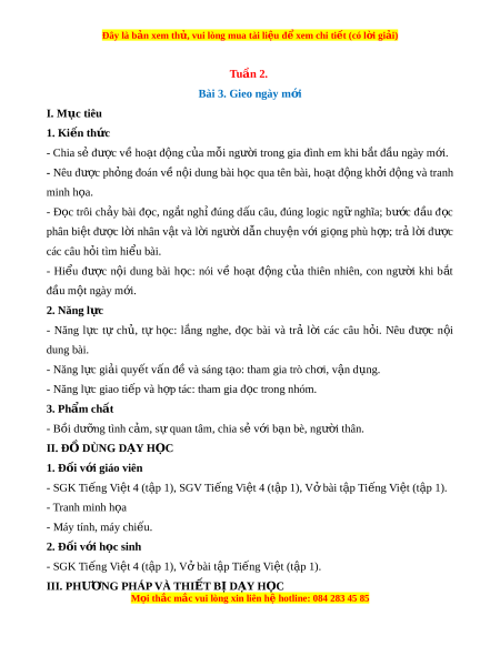 ệ đ xe ể m chi ti t ế (có l i ờ gi i ả ) Tuần 2. Bài 3. Gieo ngày m i ớ I. M c t ụ iêu 1. Ki n t ế h c ứ - Chia sẻ đư c v ợ ho ề t ạ đ ng c ộ a ủ m i ỗ ngư i