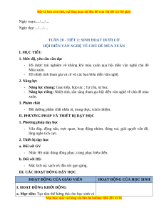 - Năng lực riêng: Nhiệt tình, sẵn sàng tham gia hội diễn văn nghệ về chủ đề mùa xuân. 3. Phẩm chất