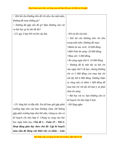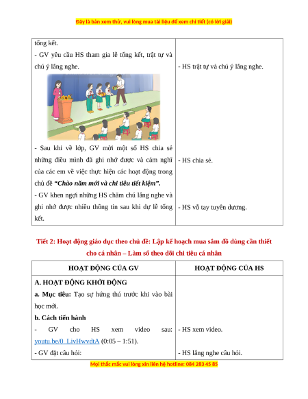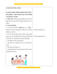Tiết 2: Hoạt động giáo dục theo chủ đề: Lập kế hoạch mua sắm đồ dùng cần thiết
