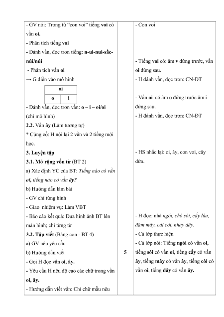 - Tiếng voi có: âm v đứng trước, vần - Phân tích vần oi oi đứng sau. → G điền vào mô hình