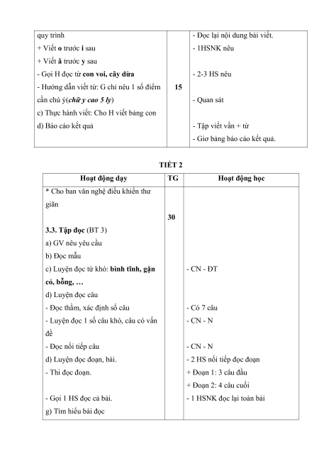 - Giơ bảng báo cáo kết quả. TIẾT 2 Hoạt động dạy TG Hoạt động học