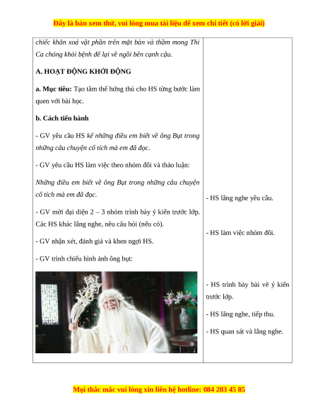 - GV yêu cầu HS kể những điều em biết về ông Bụt trong