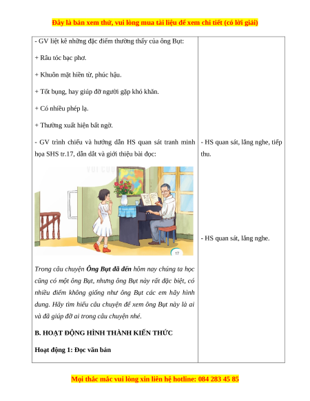 - HS quan sát, lắng nghe, tiếp