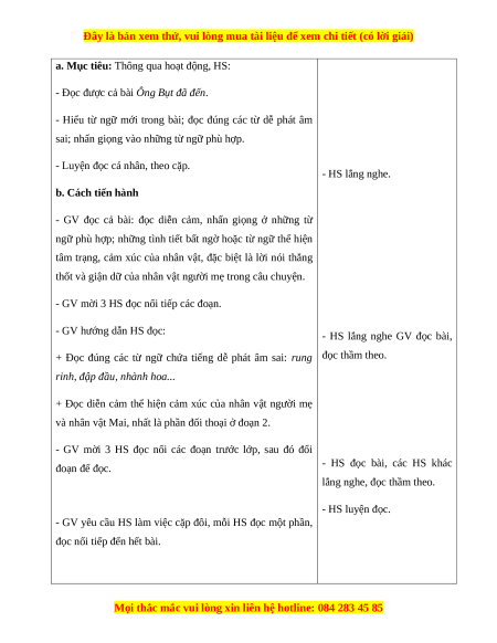 lắng nghe, đọc thầm theo.