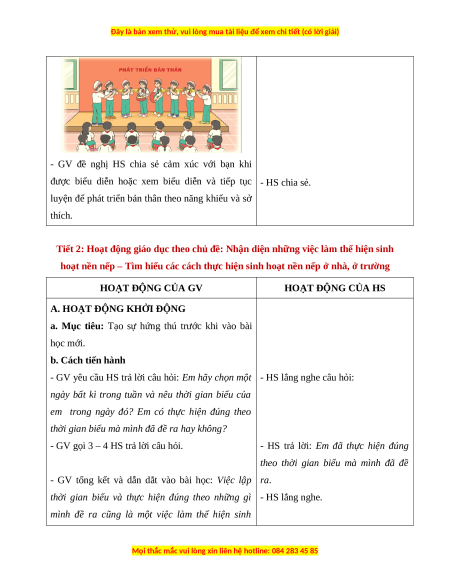 Tiết 2: Hoạt động giáo dục theo chủ đề: Nhận diện những việc làm thể hiện sinh