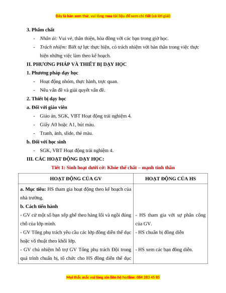 TÀI LIỆU BỘ BÁN CHẠY MÔN Hoạt động trải nghiệm