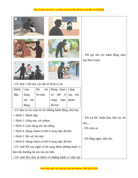 Hoạt động 1: Nhận biết hành vi xâm hại trẻ em