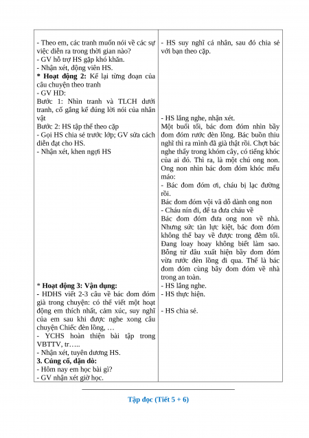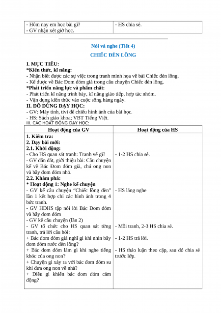 - GV kể câu chuyện “Chiếc lồng đèn”