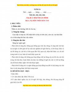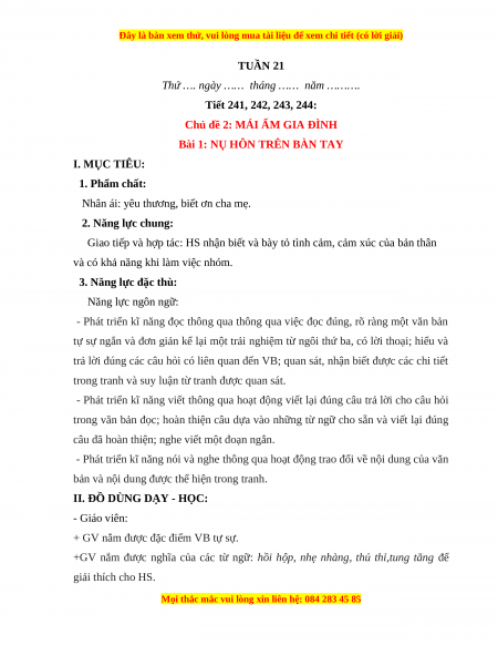 Bài 1: NỤ HÔN TRÊN BÀN TAY I. MỤC TIÊU: 1. Phẩm chất: