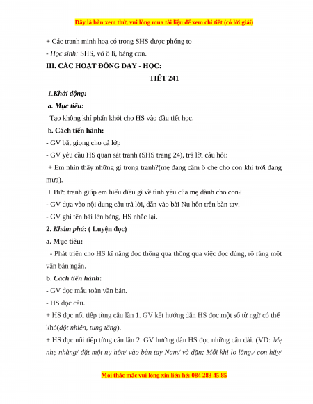 III. CÁC HOẠT ĐỘNG DẠY - HỌC: TIẾT 241