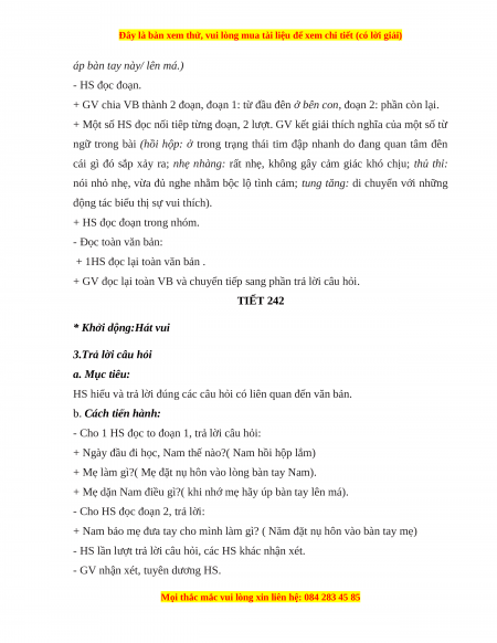 + GV đọc lại toàn VB và chuyển tiếp sang phần trả lời câu hỏi. TIẾT 242