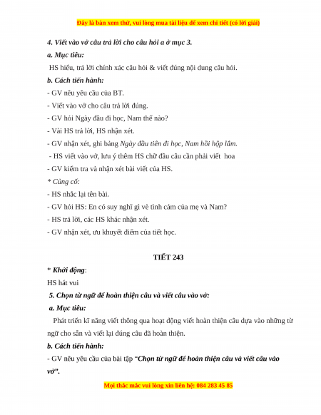 - GV nhận xét, ưu khuyết điểm của tiết học. TIẾT 243