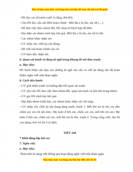 - Phát triển kĩ năng viết thông qua hoạt động viết lại đúng câu trả lời cho câu hỏi