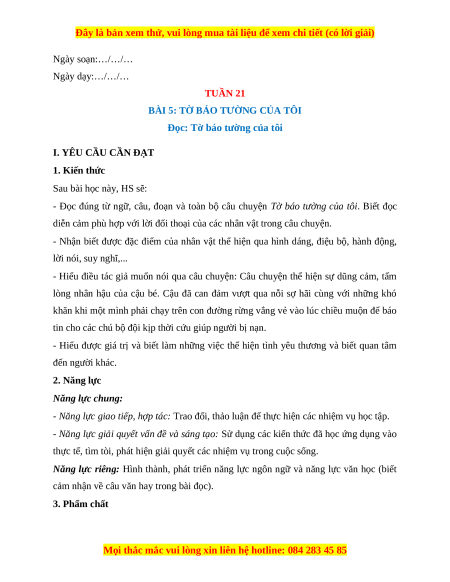 Giáo án Tuần 21 Tiếng Việt lớp 4 Kết nối tri thức