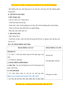 - Tranh ảnh, tư liệu, video sưu tầm liên quan đến bài học và dụng cụ học tập theo yêu cầu của GV.