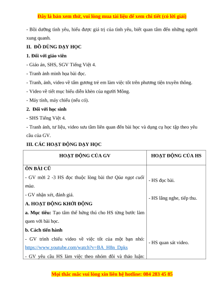 Bộ giáo án Tiếng Việt lớp 4 Kết nối tri thức được cập nhật liên tục trong gói này từ nay đến hết tháng 3/2024.