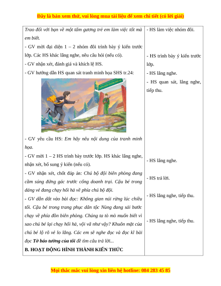 chạy về phía đồn biên phòng. Chúng ta tò mò muốn biết vì - HS lắng nghe, tiếp thu.