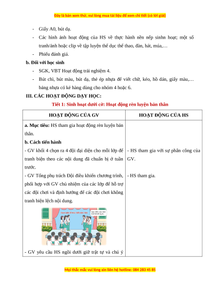 - GV yêu cầu HS ngồi dưới giữ trật tự và chú ý