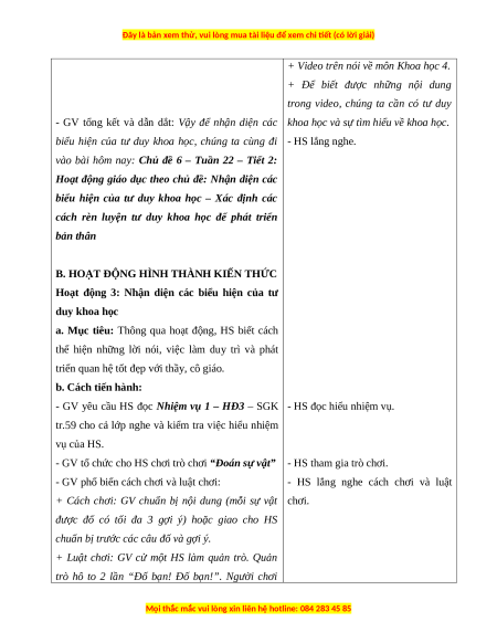 Hoạt động 3: Nhận diện các biểu hiện của tư duy khoa học