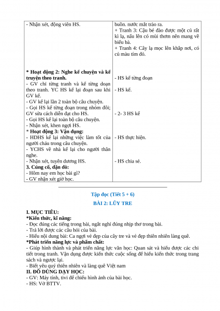 - Hiểu nội dung bài: Ca ngợi vẻ đẹp của cây tre và vẻ đẹp thiên nhiên làng quê.