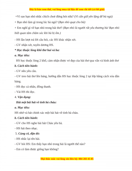Hát một bài hát về tình bà cháu: a. Mục tiêu:
