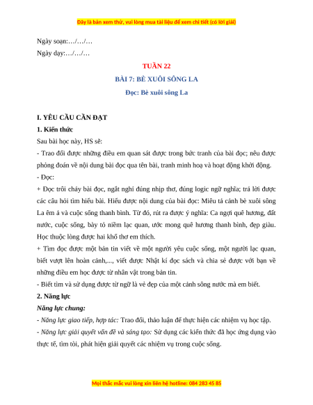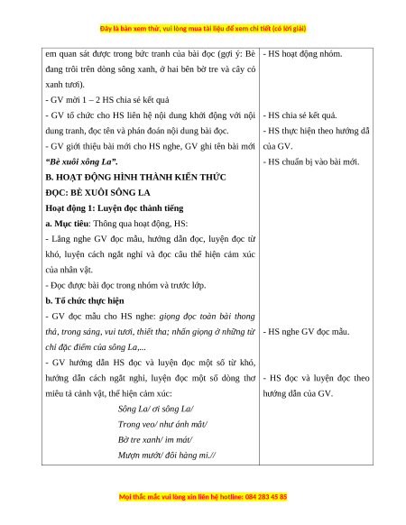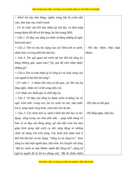 miêu tả cảnh vật, thể hiện cảm xúc: hướng dẫn của GV. Sông La/ ơi sông La/