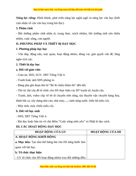 Bộ giáo án Tiếng Việt lớp 4 Chân trời sáng tạo được cập nhật liên tục trong gói này từ nay đến hết tháng 3/2024.