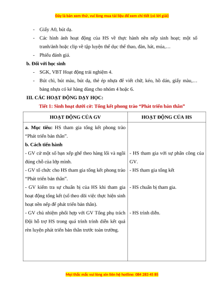 Tiết 1: Sinh hoạt dưới cờ: Tổng kết phong trào “Phát triển bản thân”