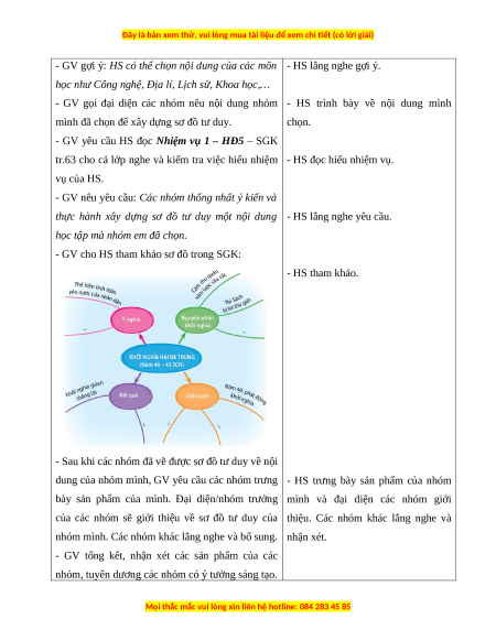 dung của nhóm mình, GV yêu cầu các nhóm trưng